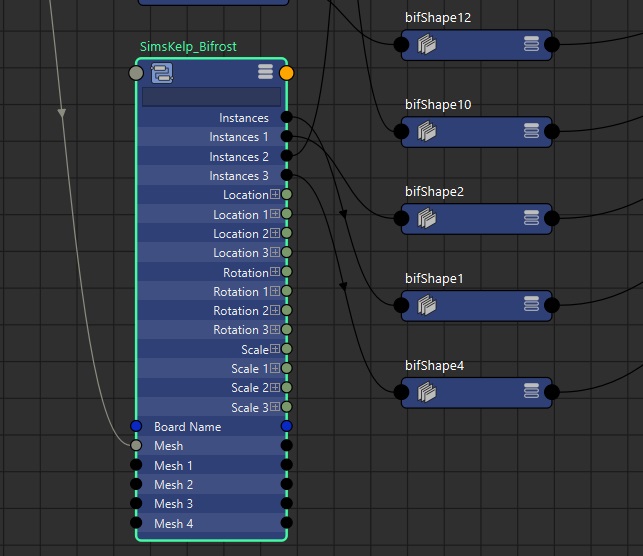 Scripting the csv export is probably the most tedious part if you have multiple static meshes, like Kelp 1, 2 and 3. This is only because Maya’s naming will always be adding integers to the node name as a suffix when you create them. The first node you add probably won’t have an integer (like Location above), but the second one will add a ‘1’, and then increment–so sometimes the ‘index’ below will just return: “”. The ‘node’ is also necessary for finding the specific Bifrost graph should you have multiple in one Maya scene.