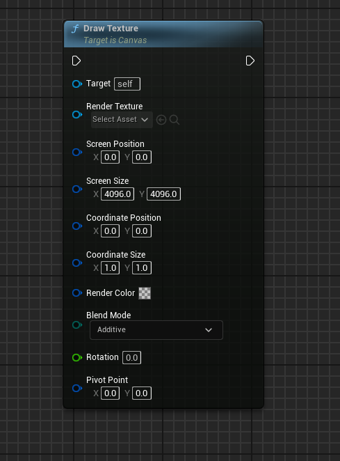 The usual way of drawing into a Render Target is via “Draw Texture” where it takes in a target target and applies it to the Render Texture. In my case, the Render Texture is the persistent texture mask applied to grass geo, landscapes, etc, and the Target is my SceneCaptureComponent2D’s output.